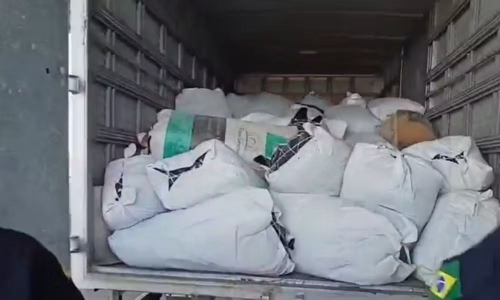 Após perseguição, ele foi cercado, preso e o veículo foi revistado. No compartimento de carga, os policiais encontraram diversos fardos de maconha escondidos, totalizando 781 kg de maconha.