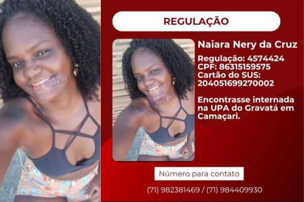 Familiares de Naiara Nery da Cruz, de 30 anos, procuraram o Alô Juca para realizarem um apelo relacionado ao pedido de regulação da mulher. A paciente está internada e precisa ser transferida para tratar uma bactéria na veia do coração.