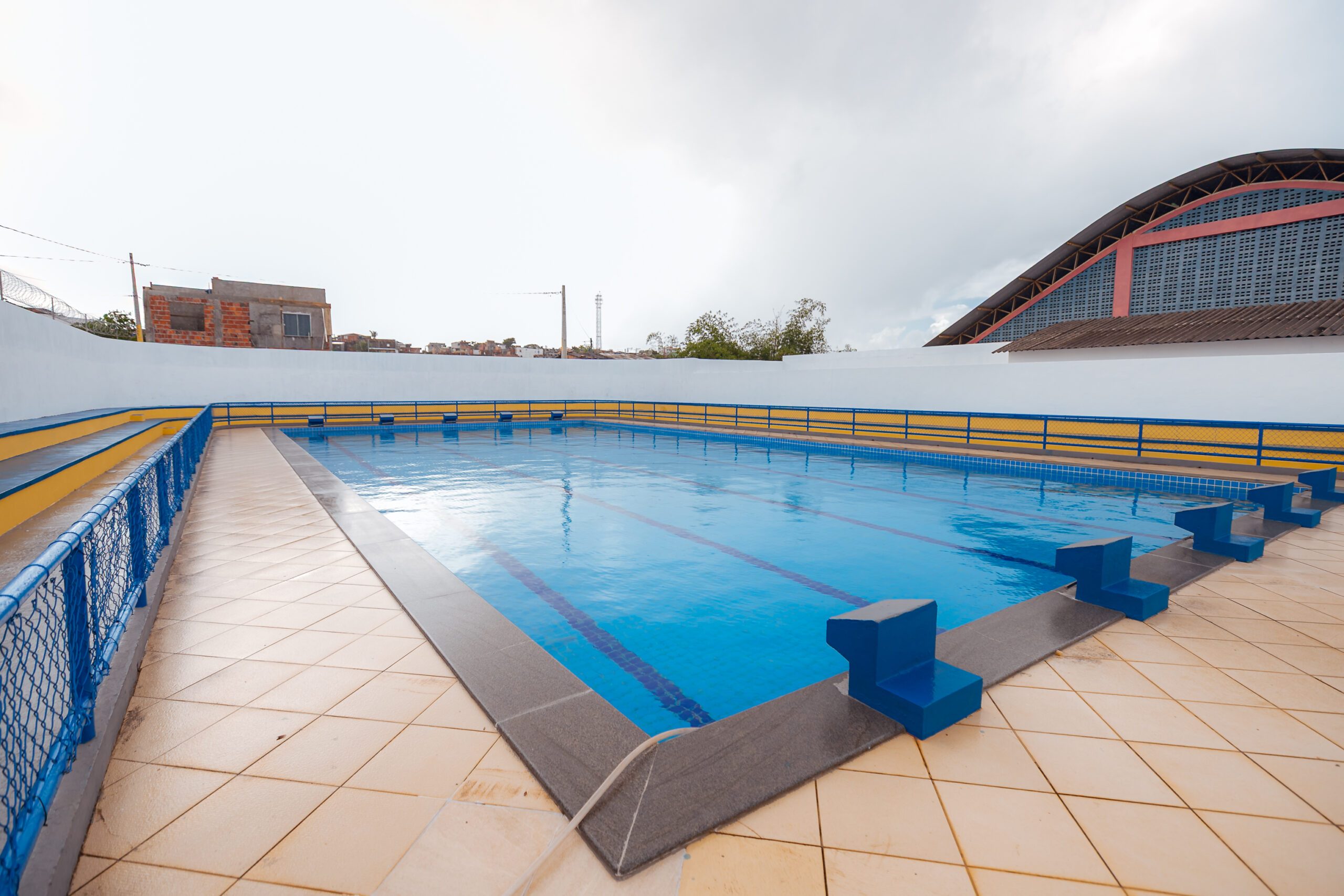 Como presente para os moradores, o espaço destinado à prática de esportes aquáticos recebeu melhorias significativas, como reestruturação das redes elétrica e sanitária, substituição das bordas por granito, tratamento e pintura dos muros e arquibancadas, além do reparo do gradil para garantir mais segurança e a organização do canteiro.